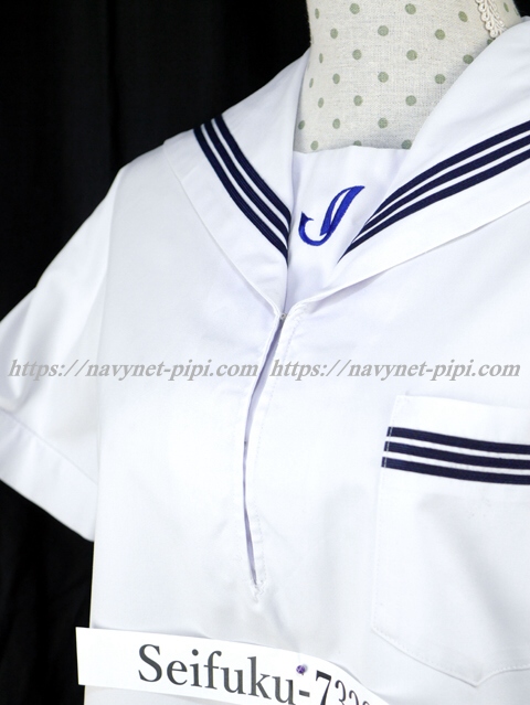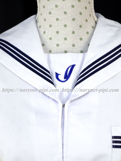 | 詳細/特徴 夏服(上着) 1箇所シミ 白い半袖のセーラー服♪ セーラー襟と胸ホケットに紺線3本入り☆ 人気の胸当てに校章刺繍と3本ライン☆ 左脇下ファスナー☆ |
