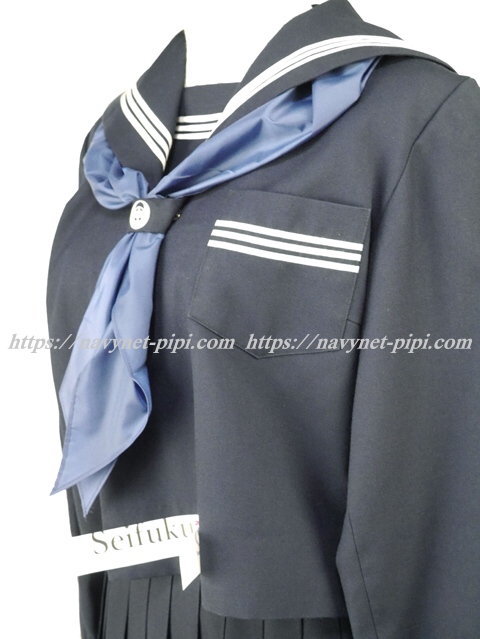 | 詳細/特徴 冬服上下3点セット (上着・スカート・指定スカーフ) マイクロミニ丈 【スカーフは新品のハネクトーン三角スカーフです】 上着はセーラー襟、胸当て、胸ポケット、両袖口に白線3本 スカーフ留めに白で校章刺繍入り♪ スカートは濃紺の28本仕様の車ヒダプリーツスカート♪ 左ファスナー&ポケット☆ ウエスト調整はアジャスタータイプ☆ |