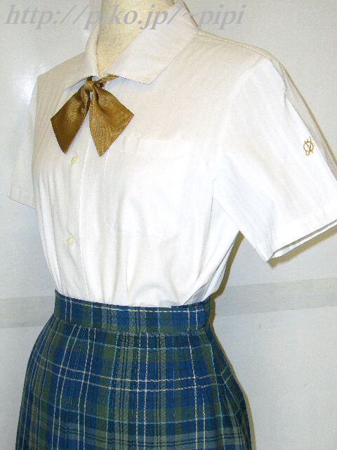 | 詳細/特徴 夏服上下セット (ブラウス・スカート) ☆旧制服☆ ブラウスの袖に校章刺繍入り♪ スカートは16本の小さな箱ヒダプリーツで前後に1本 ボックスプリーツ☆ |