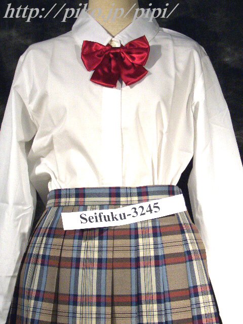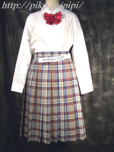 3年間の使用済み制服なので自然な使用感の傷みは若干あります♪ブラウスの右肘にお写真のような青いシミ汚れがある以外は綺麗な状態です♪スカートの状態も良くて綺麗ですょ〜☆ |