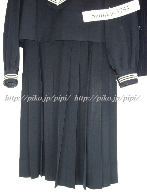濃紺のセーラー服☆胸当てに白百合の校章刺繍入り♪