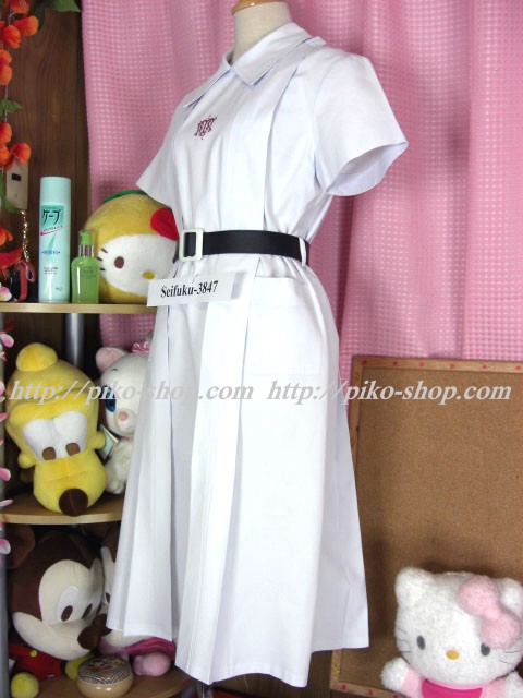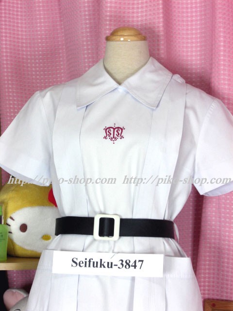 | 詳細/特徴 夏服ワンピース (夏服・専用ベルト) ☆人気制服☆ 純白のワンピース制服・両腰にポケット付き♪ 胸に赤で校章刺繍入り☆ 肩スナップ&左スナップ留め♪ |