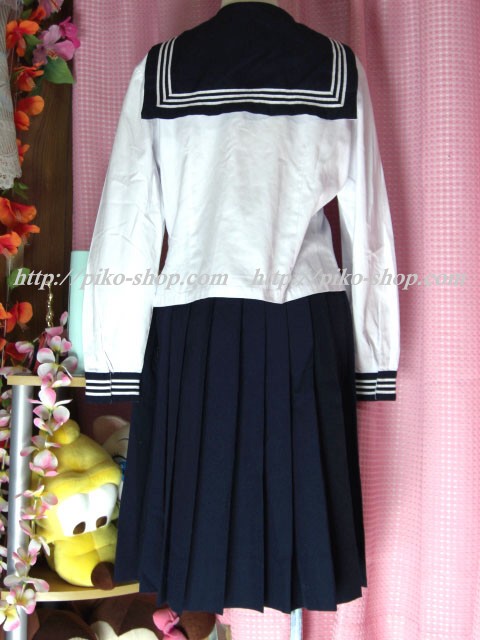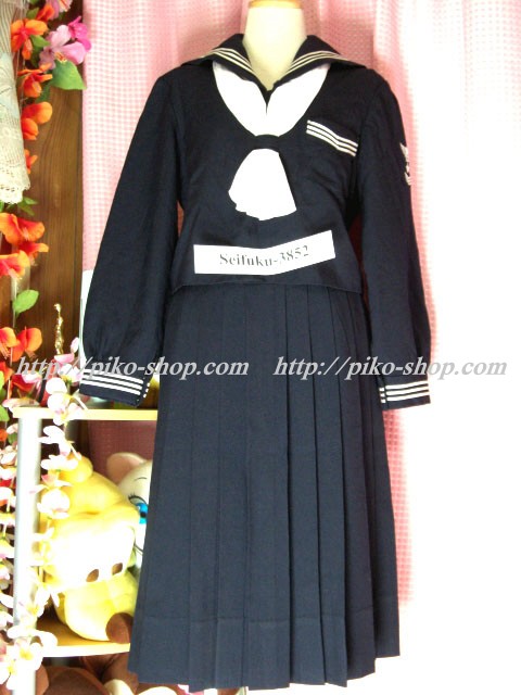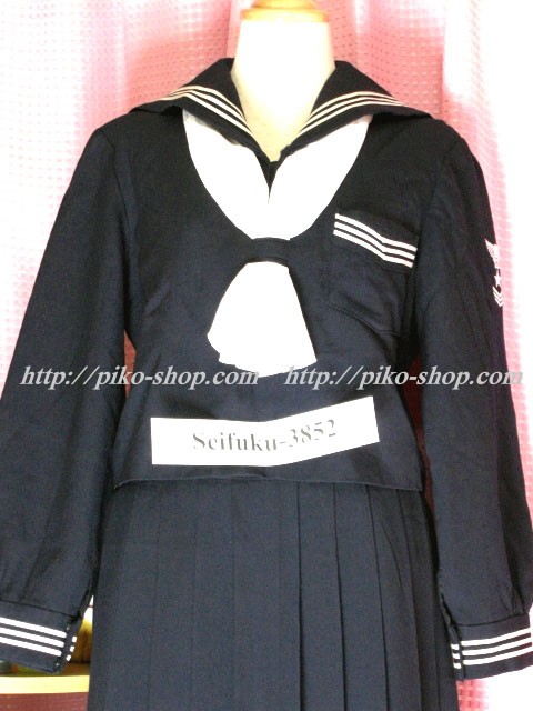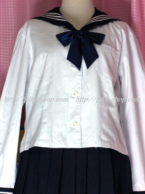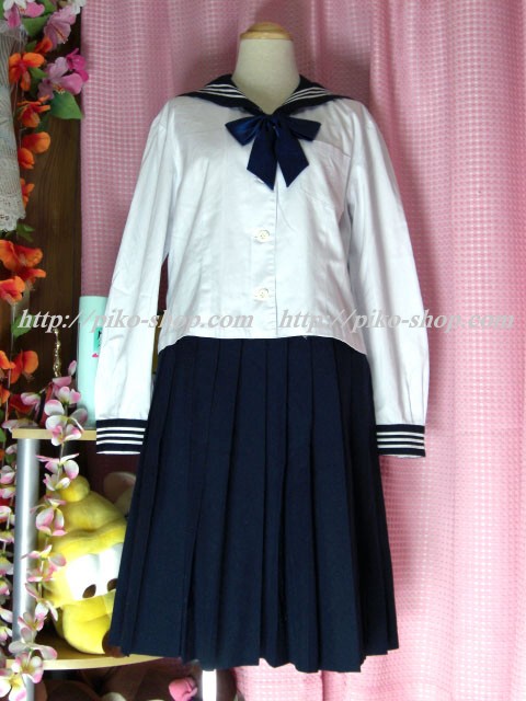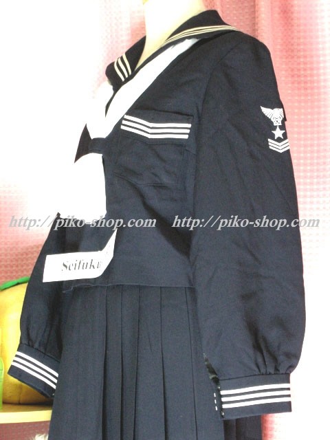 | 詳細/特徴 冬服・合服・夏服9点セット (冬服上下・合服上下・夏ワンピース・専用スカーフ3点) ☆豪華セット☆ 冬服は濃紺のセーラー服で左袖の校章刺繍が特徴的☆ スカートは濃紺の24本箱ヒダプリーツスカート♪ ウエストベルトにアンダーシャツ用のボタン穴があります☆ ウエスト調整は1段ホック・左ファスナー☆ 合服は紺色のセーラー襟で長袖♪ 前開きボタンタイプで紺の専用リボンネクタイ☆ スカートは濃紺の24本箱ヒダプリーツスカート♪ ウエストベルトにアンダーシャツ用のボタン穴があります☆ ウエスト調整は1段ホック・左ファスナー☆ 夏服は白いワンピースタイプで紺のセーラー襟と胸ポケット が特徴的な感じです☆ 左袖に水色で校章刺繍入りなのも特徴的♪ 左脇下ファスナー |