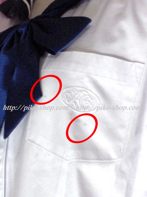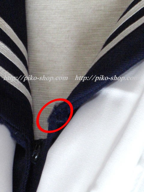 | 品質と状態 使用済みなので自然な使用感の傷みは若干あります。お写真のように合服セーラーの胸ポケットに薄いシミ汚れと背中に1o位の墨汁の飛びシミ、夏ワンピースのスカート部分の前側に1o位の墨汁の飛びシミが9ヶ所程、後側の裾付近にも3ヶ所あります。カーディガンは若干色落ちしているのと全体的に毛羽立った感じです。尚、冬服のアンダーシャツと夏ワンピースのベルトはありません。 |