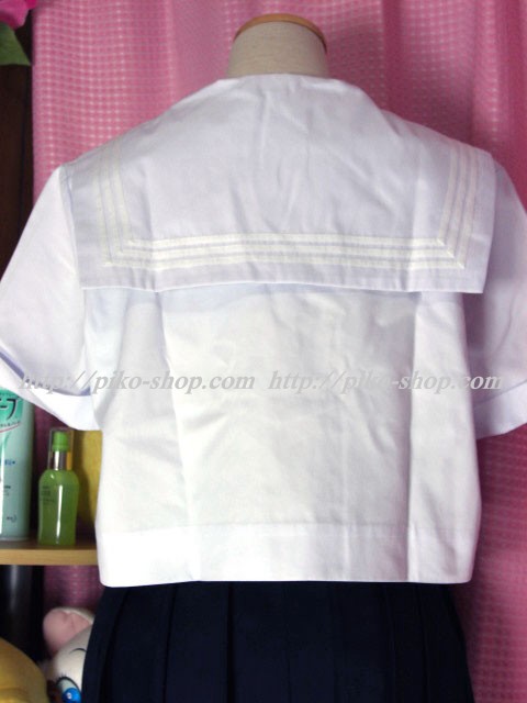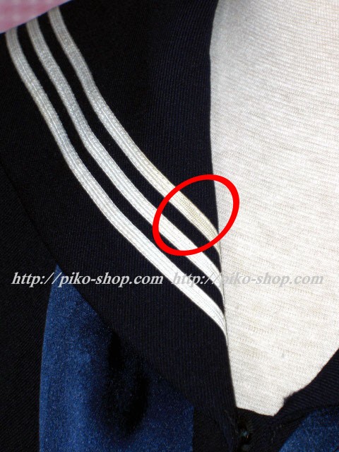 | 品質と状態 3年間の使用済み制服になるので自然な使用感の傷みはあります。お写真のように、冬服のセーラー襟の白線が左右共に少し黄ばんでいる部分があのと冬スカートに白いシミ汚れがあります。(1〜2o位が3ヶ所と5o位が1ヶ所)あと2〜3o位の引っかけ傷みがあります。夏スカートの内側のウエスト下辺りに毛玉が多数あります。 |
