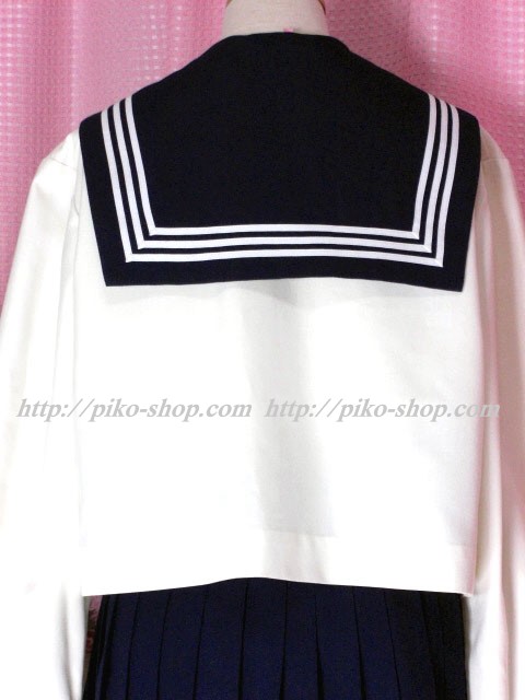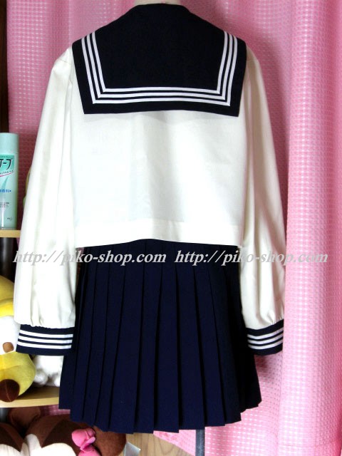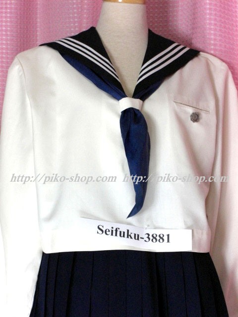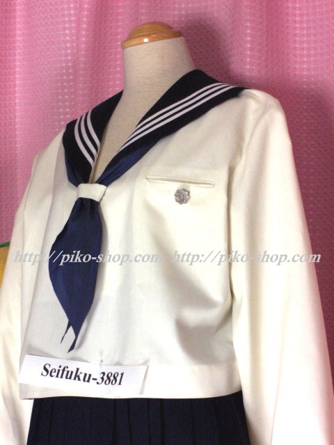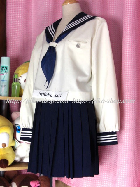| 詳細/特徴 合服4点セット 上着・スカート・指定スカーフ・校章バッチ ☆人気の貴重な旧制服・大きいサイズ・ミニ丈☆ 【スカーフは紺色の三角スカーフで素材はナイロン100%】 上着はアイボリー色のセーラー服で紺襟と両袖口に白線3本入り♪ スカーフ留め付き☆ スカートは濃紺で32本車ヒダ仕様のプリーツスカート♪ 左ファスナー&ポケット♪ 明善高校時代の貴重な人気制服です☆彡 |