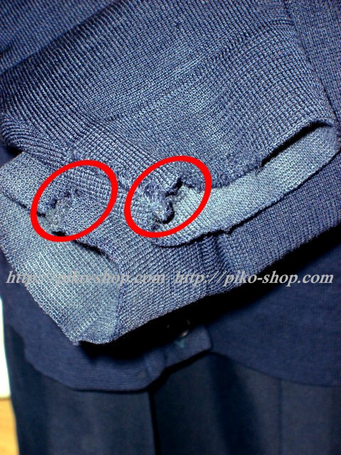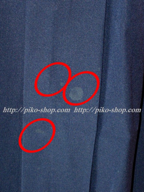| 品質と状態 3年間使用されていた使用済み制服なので自然な使用感の傷みはあります。冬服はお写真のようにスカート部分に1.5×2センチ位のシミ汚れと4ミリ×4ミリ位のシミ汚れがあるのと右ウエスト部分の縦2センチ位の破れを手縫いで修復した跡が3ヶ所、生地がつっぱった感じになってしまっているのと右ポケットの上部が8センチ位の擦り切れ箇所、前身頃の右側のプリーツの折り目部分が左右共に8センチずつ擦り切れています。冬服用の襟カバーは3枚中1枚は綺麗な状態ですが予備の2枚は首周りに汗シミがあります。夏服はお写真のように右肩にシミ汚れがあるのとスカート部分に1センチ×2センチ位の薄〜いシミが5ヶ所と0.5ミリ位の点シミが10数ヶ所あるのと両脇部分に少し汗シミがあります。カーディガンは両袖口が15センチずつくらい生地が傷んでいるのと5ミリ位のシミ汚れが2ヶ所あります。ジャージの上着は右袖に汚れがあるのと左袖に2ヶ所程シミがあります。ジャージの下は右膝部分のの生地が1.5×2センチくらい傷んでいます。 |