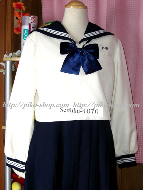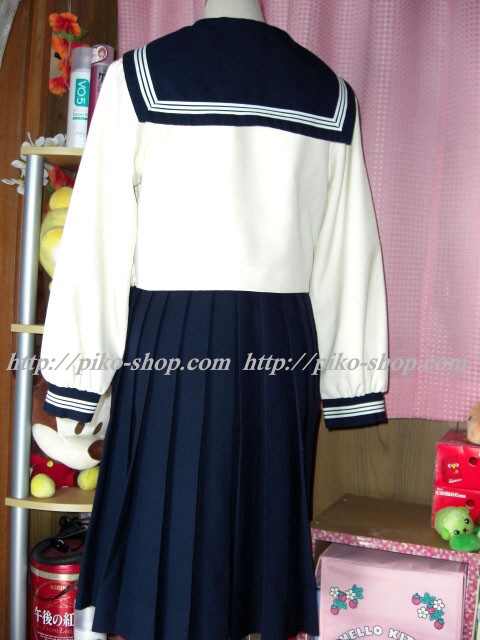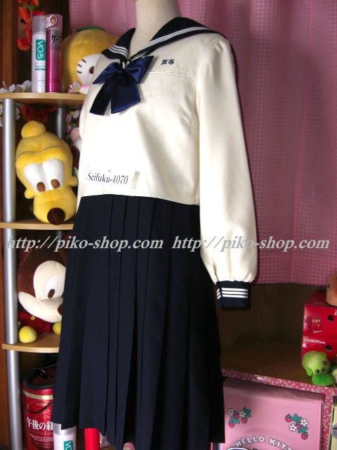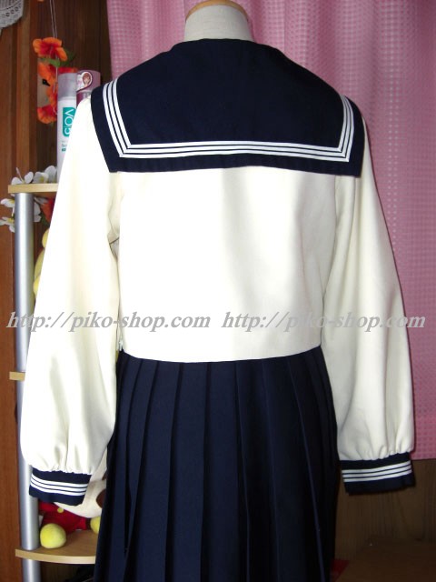 | 詳細/特徴 冬服3点セット (上着・ジャンパースカート・指定スカーフ) ☆博多の人気制服☆ 人気の高い博多女子の冬服です♪ クリーム色のセーラー服で紺色のシルクリボンが特徴! セーラー服の襟と両袖口は濃紺で白の3本ライン・左ファスナー☆ ジャンパースカートは上半身はクリーム色☆ スカート部分は濃紺で24本箱ヒダプリーツ仕様のスカート☆ 左サイドスナップ留め&ファスナータイプ♪ |