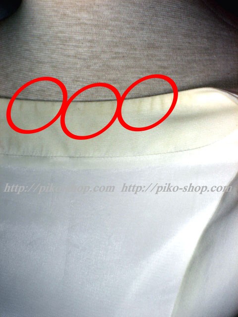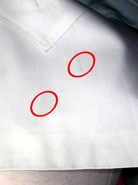 | 品質と状態 3年間の使用済み制服なので自然な使用感の傷みはあります☆特に目立った傷みはありませんがお写真のようにセーラー服の右胸に3〜5ミリ位の薄いシミが7ヶ所と腹部に5ミリ×2センチと2センチ×3センチの薄いシミがあるのとジャンパースカートの後ろの首周りと胸元にシミ汚れがあります。 |