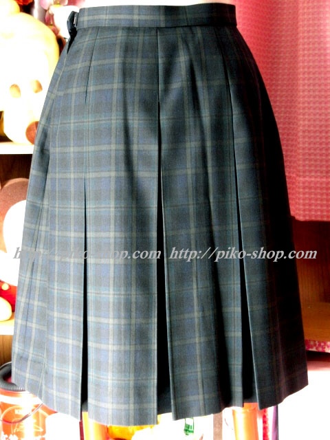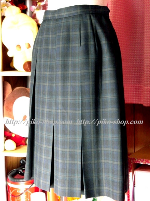 スカートグリーン系のチェック柄6本ボックスプリーツスカート♪