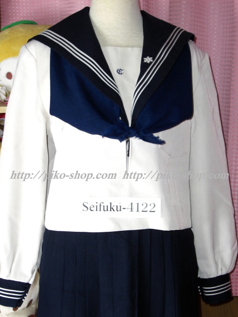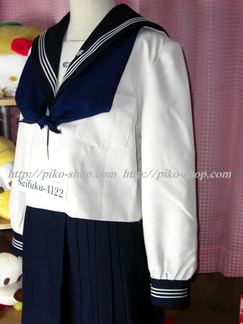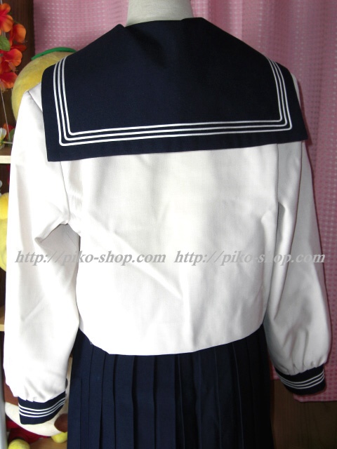 冬服はクリーム色で紺のセーラー襟とカフスに白線3本入り