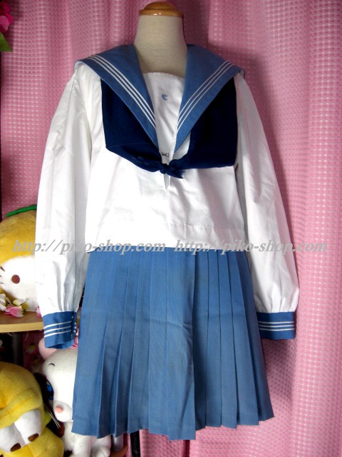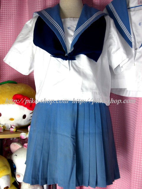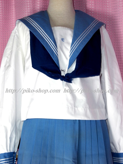 夏服合服は水色のセーラー襟に白線3本入り♪