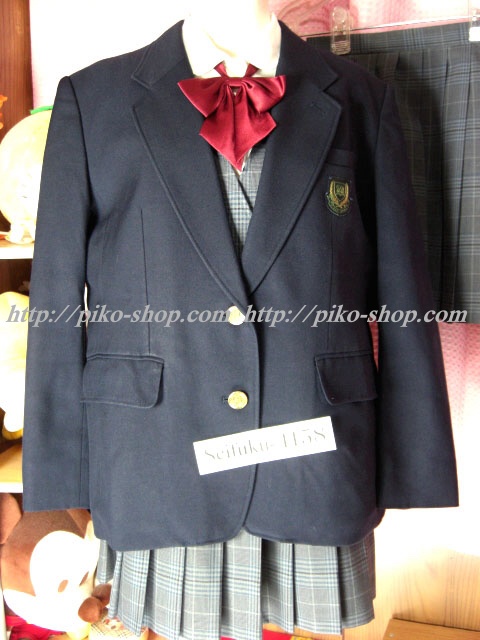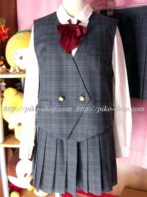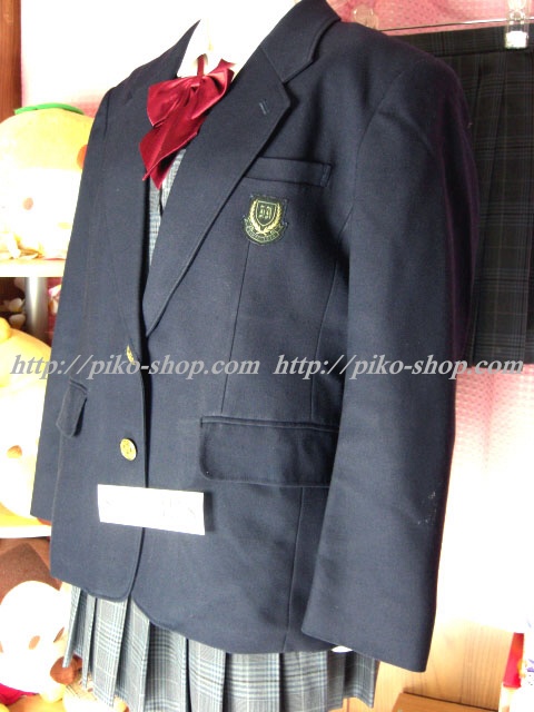 | 詳細/特徴 冬服6点セット (ブレザー・冬スカート・長袖ブラウス・ベスト・夏スカート・リボン) ☆可愛い制服☆ ブレザーは濃紺で左胸のエンブレムがポイント☆ ェックのベストにチェックのスカート☆ スカートは左ファスナー・ウエストはアジャスター調整タイプ♪ リボンはポリエステルでハネクトーン♪ |