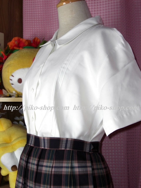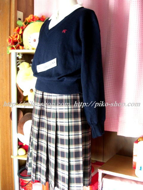 | 詳細/特徴 夏服4点セット (ブラウス・スカート・セーター・体育用スニーカー) ☆可愛いです☆ ブラウス&チェックのスカート♪ スカートはチェック柄で16本車ヒダプリーツスカート☆ 左ファスナー・アジャスター調整タイプ セーターは左胸の校章刺繍がポイント☆ |
