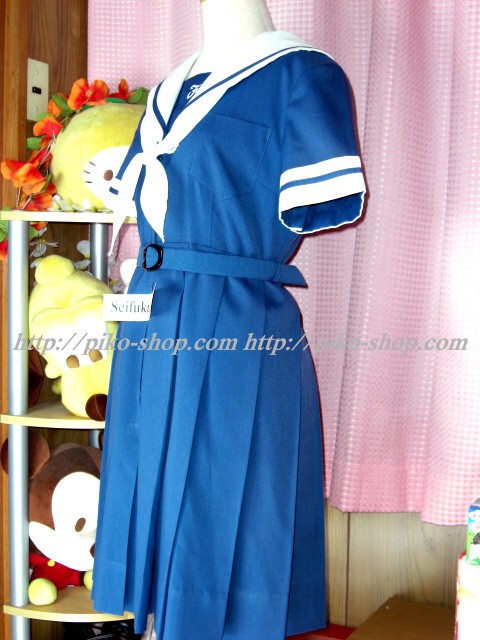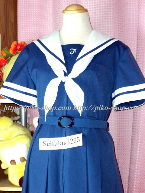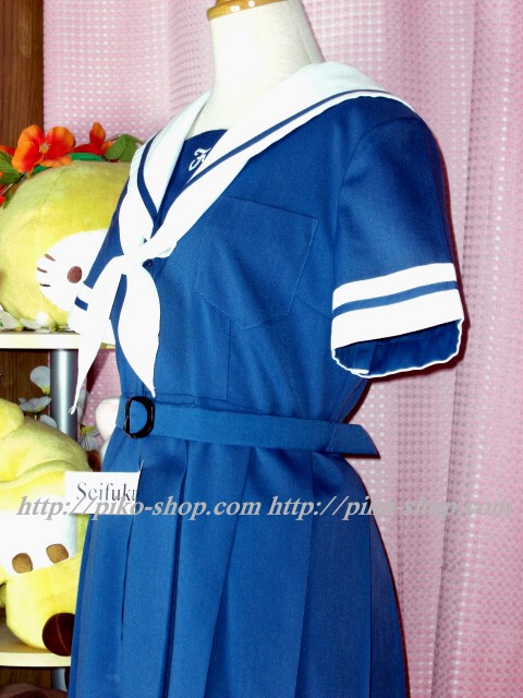 | 詳細/特徴 夏服ワンピース (セーラータイプのワンピース・専用ベルト・指定スカーフ) ☆可愛い制服☆ 濃紺のブレザーはシングルボタンで校章入りの金ボタンが特徴☆ ブルーのセーラーワンピースでとても人気の高い制服♪ 白いセーラー襟と袖口にはブルーの1本ライン入りで 胸当てには「F」の校章刺繍入り☆ 前開きファスナータイプ☆ スカート部分は12本プリーツ仕様のスカート♪ スカーフはポリエステルのハネクトーンでスナップ留めタイプ☆ |