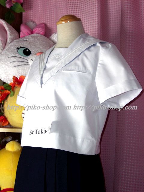 | 詳細/特徴 夏服2点セット 夏セーラー・スカート ☆可愛い☆ 夏セーラーは胸当ての校章刺繍が特徴的♪ スカートは濃紺の24本箱ヒダプリーツスカート♪ ウエストベルトにアンダーシャツ用のボタン穴があります☆ 左ファスナー |