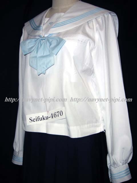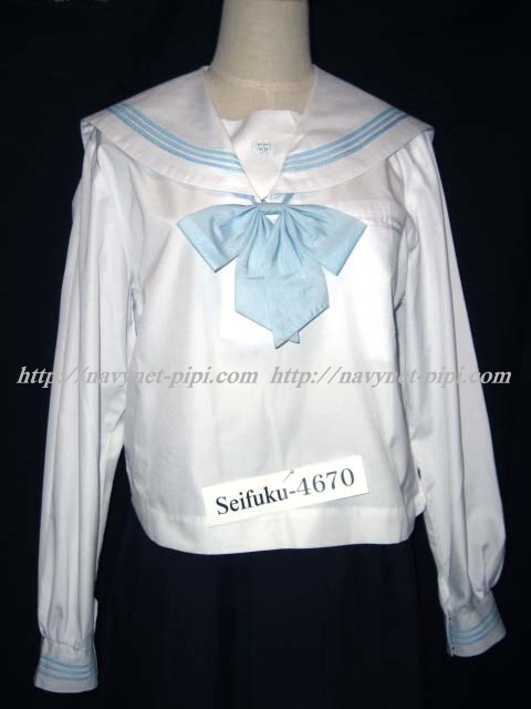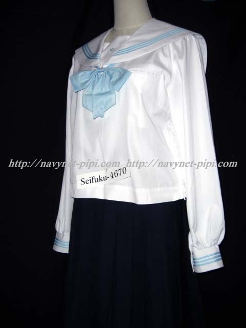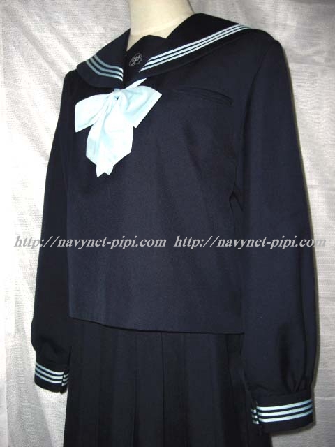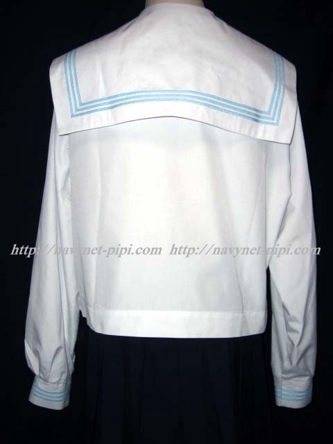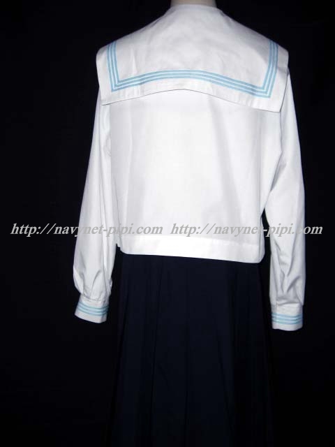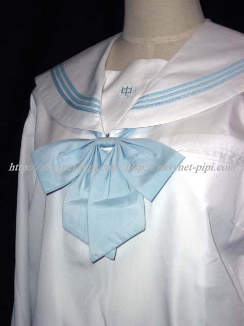 | 詳細/特徴 合服3点セット (上着・スカート・指定リボン) ☆冬服上着付き☆ 白い清潔感ある合服のセーラー服セットです♪ 合服上着はセーラー襟と両袖口に水色の3本ライン入りで 胸当ての校章刺繍が特徴的です☆ 左脇下ファスナー スカートは夏と合服の兼用の夏スカート☆ 濃紺の24箱ヒダプリーツスカート ウエスト調整はアジャスタータイプ☆ 指定リボンはナイロン100%のハネクトーンでスナップ留め☆ 冬服上着もセーラー襟と両袖口に水色の3本ライン入り 胸当ての校章刺繍が特徴的です☆ 左脇下ファスナー |