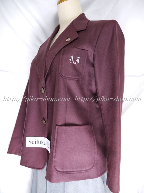 | 詳細/特徴 冬服3点セット (ブレザー・スカート・校章バッチ) ☆旧制服☆ 小豆色の珍しいブレザーとグレーのボックススカートバージョン♪ 上着は前2個ボタン・袖口にも2個ボタン☆ スカートは6本ボックスプリーツ・左ファスナー・左ポケット ウエスト調整はアジャスタータイプ☆ |