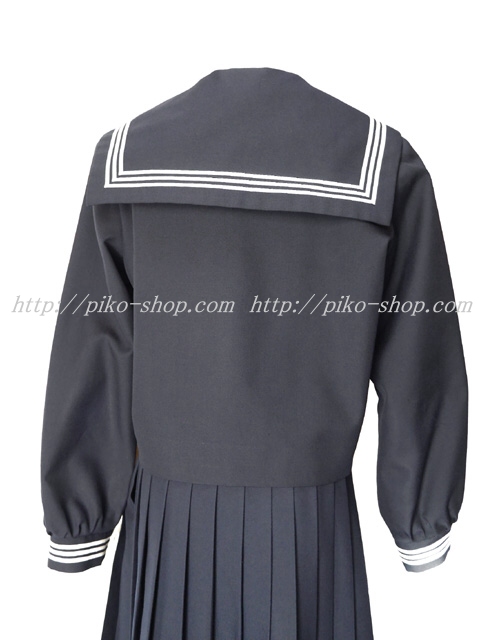 | 詳細/特徴 冬服3点セット (上着・スカート・専用スカーフ) ☆30本プリーツ☆ 【スカーフは新品の帯タイタイプで素材はポリエステルのデシンです】 濃紺のセーラー服セット♪ 白線3本ラインのセーラー服・左脇下ファスナー☆ 胸当て付き・胸ポケットにライン入り☆ スカートは30本車ヒダ仕様のプリーツスカート♪ 左ファスナー&ポケット☆ ウエスト調整はアジャスタータイプ♪ |