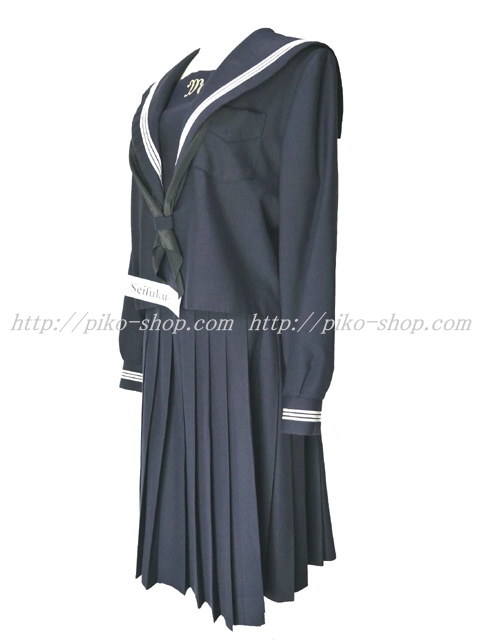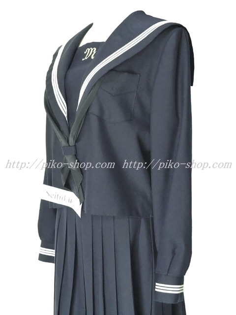 | 詳細/特徴 冬服3点セット (上着・スカート・指定スカーフ) ☆大きいサイズ☆ 濃紺のセーラー服セット♪ 【スカーフはお古で黒の帯タイプ・素材はナイロン100%のアミック】 白線3本ラインのセーラー服・左脇下ファスナー☆ 大きな深い胸当てに白で校章刺繍がポイント♪スカーフ留め付き スカートは濃紺で28本車ヒダプリーツスカート♪ 左ファスナー&ポケット☆ ウエスト調整はアジャスタータイプ☆ 上着・スカートにネーム刺繍入り♪ 全国高等学校女子制服グランプリ2014年「制服甲子園!」兵庫地区で 1位に輝いた人気制服のセーラー服になります♪ |