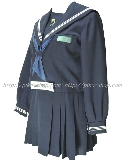| 詳細/特徴 冬服4点セット (上着・ジャンパースカート・専用ベルト・指定スカーフ) ☆超ミニ丈タイプ☆ 【スカーフは紺の帯タイで素材はナイロン100%のハネクトーンで中古です】 濃紺のセーラー服とジャンバースカートのセットです♪ セーラー服の上着は濃紺でセーラー襟に白線3本☆ 胸当てに白で校章刺繍入り☆ 左脇下ファスナー☆ ジャンバースカートも濃紺でスカート部分は24本箱ヒダ仕様のプリーツスカート♪ 左肩スナップ&左脇下スナップ&ファスナー♪ |