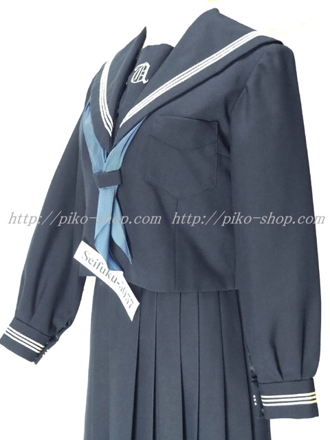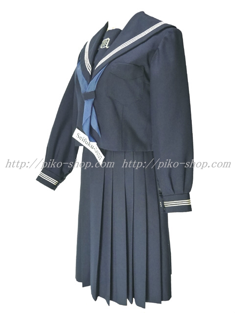 | 詳細/特徴 冬服4点セット (上着・ジャンパースカート・専用ベルト・指定スカーフ) ☆人気制服☆ 【スカーフは紺の帯タイで素材はナイロン100%のハネクトーンで中古です】 濃紺のセーラー服とジャンバースカートのセットです♪ セーラー服の上着は濃紺でセーラー襟に白線3本☆ 胸当てに白で校章刺繍入り☆ 左脇下ファスナー☆ ジャンバースカートも濃紺でスカート部分は24本箱ヒダ仕様のプリーツスカート♪ 左肩スナップ&左脇下スナップ&ファスナー♪ |