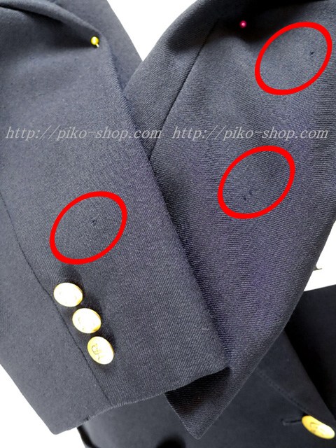 3年間の使用み制服なので自然な使用感の傷みはあります。丁寧に大切に着ていた様子ですが保管時の保管状況が悪かった様子でお写真のような虫食い傷みが数カ所ある状態です。
