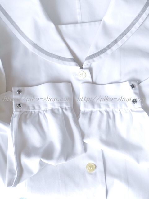 | 詳細/特徴 ブラウス (長袖) ☆指定ブラウス☆ シルバーのセーラーラインが特徴のセーラーブラウス♪ 胸ポケットに校章刺繍入り☆ |