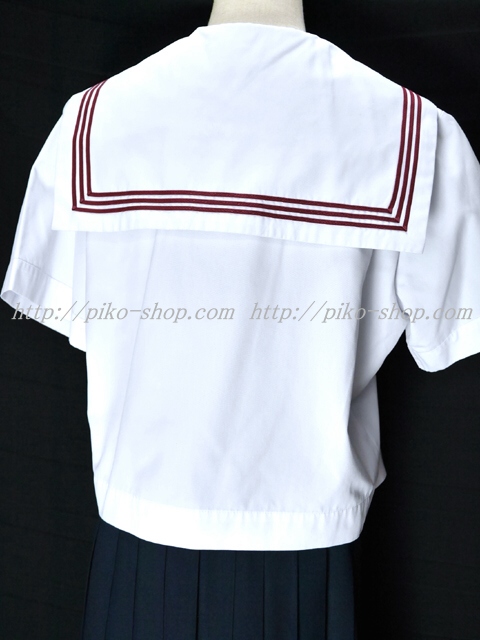 | 詳細/特徴 夏服3点セット (上着・スカート・専用リボン) ☆大きいサイズ☆ 【専用リボンはお古でポリエステル100%のハネクトーンです】 上着はセーラー襟にエンジの3本ライン・左脇下ファスナー 胸当てにエンジ色で「K」の校章刺繍入り☆ スカートは濃紺で28本車ヒダプリーツスカート♪ 左ファスナー&ポケット☆ ウエスト調整はアジャスタータイプ♪ |