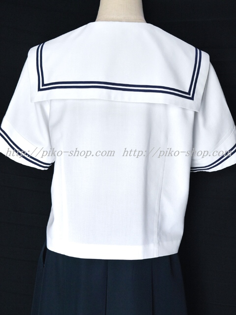| 詳細/特徴 夏服2点セット (上着・スカート) ☆人気制服☆ セーラー襟付きのジャケット風な夏セーラー服です。 襟は大きな関西襟と胸当てに校章刺繍入り♪ スカートは濃紺の6本ボックスプリーツ・右ポケット☆ ウエスト調整はアジャスタータイプ♪ |