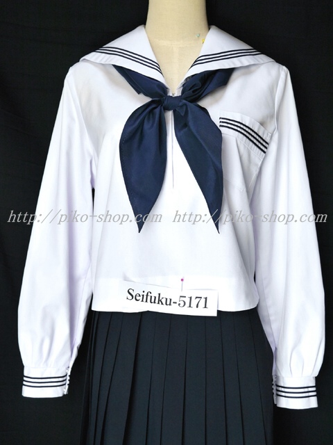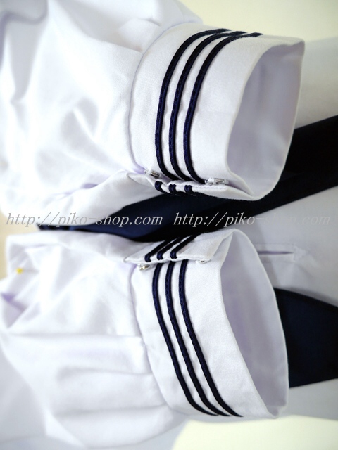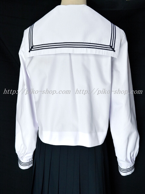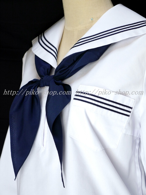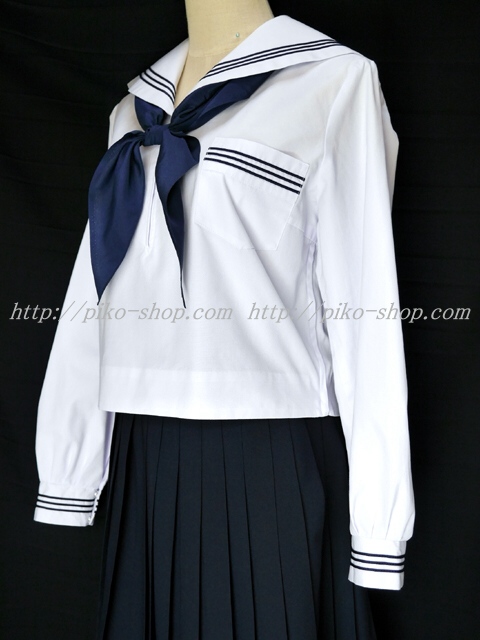 | 詳細/特徴 合服3点セット (上着・スカート・専用スカーフ) ☆濃紺セーラー☆ 【スカーフはお古の三角タイプで素材はポリエステルのデシンです】 人気の合服、長袖のセーラー服セット♪ 上着は左脇下ファスナー・スカーフ留め付き☆ セーラー襟に紺色の3本ライン♪ スカートは濃紺で32本車ヒダ仕様のプリーツスカート♪ 左ファスナー&ポケット☆ ウエスト調整はアジャスター調整タイプ |