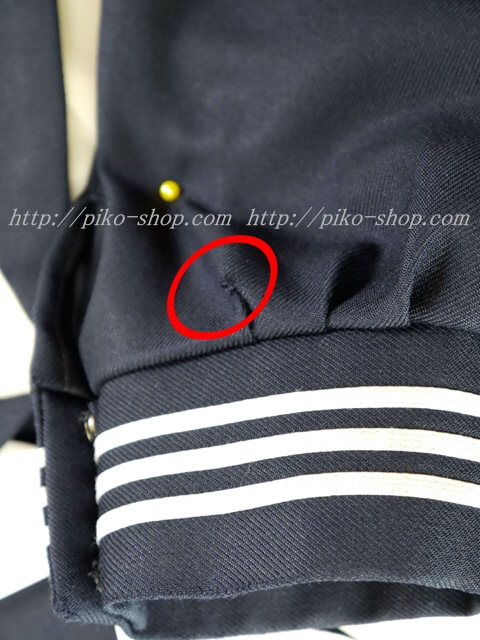 | 品質と状態 3年間の使用済み制服なので自然な使用感の傷みはあります♪丁寧に大切に着ていた様子ですがお写真のように両袖口の白線ラインに若干の黄ばみシミ汚れと左袖口の上に1箇所お写真のような小さな擦り切れ傷みがあります(*_*; |