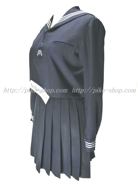 | 詳細/特徴 冬服2点セット (上着・スカート) ☆ミニ丈☆ 冬服はスカーフ留め部分に校章刺繍入り♪ 冬服スカートは濃紺の24本箱ヒダプリーツスカートで ウエストベルトにアンダーシャツ用のボタン穴があります☆ 左ファスナー |