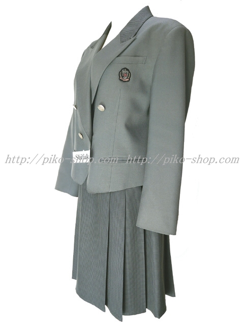 | 詳細/特徴 冬服2点セット (ブレザー・スカート) ☆旧旧制服☆ ブレザーはモスグリーンで胸に校章のエンブレム付き☆ スカートはチェック柄で前幅広タイプの12本箱ヒダスカート♪ 左ファスナー・ウエストはアジャスター調整タイプ☆ |