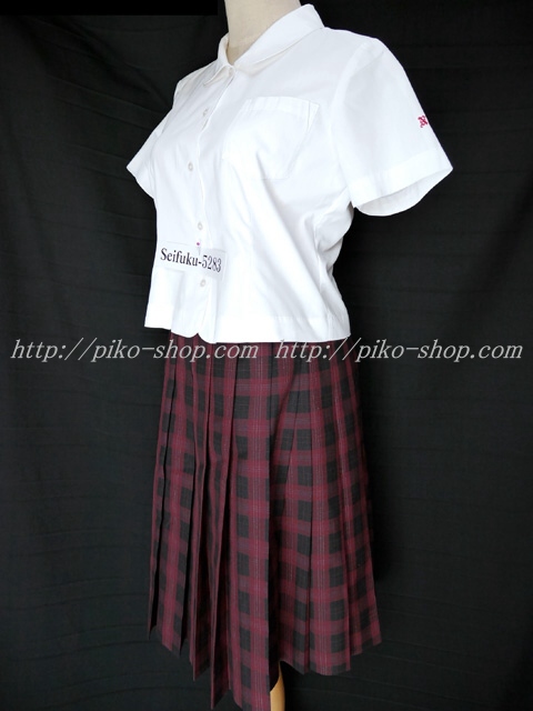 | 詳細/特徴 夏服2点セット (半袖ブラウス・スカート) ☆現行制服☆ ☆スカートは新タイプのヒップハング☆ ブラウスは最新の改良タイプで丈が短くなったデザイン☆ ブラウスの左袖に校章刺繍入り☆校章の色は学年によって色分けされています♪ スカートは改良タイプで冬服と同じ赤いチェック柄タイプのスカート☆ 20本車ヒダプリーツスカート・左ファスナー・左ポケット ウエスト調整はアジャスタータイプ☆ ヒップハングタイプでウエスト下と裾上に校章刺繍入り☆ |