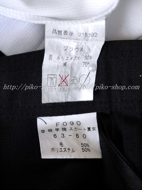 | 詳細/特徴 夏服2点セット (ブラウス・スカート) ☆現行制服☆ オフホワイトのセーラー襟付きブラウス♪ 前開きファスナー 両腰にポケット・腰ポケットに校章刺繍入り♪ スカートは濃紺に少し黒みが入ったチェック柄で12本幅広の箱ヒダスカート☆ 左ファスナー・ウエスト調整はアジャスタータイプ♪ 現在は啓明学院中学校・高等学校と学校名が変更になり男女共学になりました☆ |