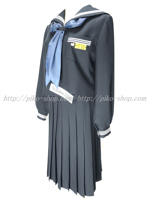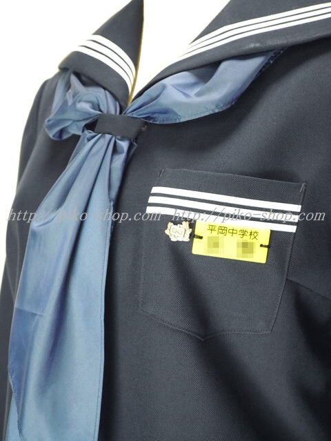 | 詳細/特徴 冬服5点セット (上着・スカート・指定スカーフ・校章バッチ・プラスチック名札) ☆校名入りプラスチック名札☆ 【スカーフは新品の三角スカーフで素材はナイロンのハネクトーンです】 人気の濃紺タイプのセーラー服セット♪ セーラー襟に白線3本入り・胸ポケットに白線3本☆ スカーフ留め付き・左脇下ファスナー☆ スカートは24本車ヒダ仕様のプリーツスカート♪ 左ポケット&ファスナー☆ ウエスト調整はアジャスタータイプ☆ ♪希少な校名入プラスチック名札付き♪ |