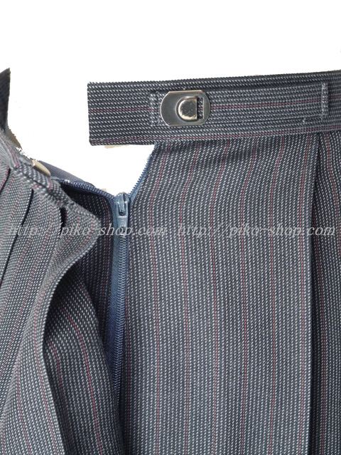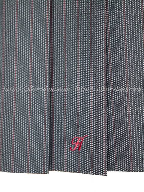 スカートはチャコルグレーの生地に白と赤のストライプ柄☆