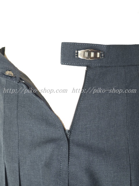 | 詳細/特徴 夏スカート (指定品) ☆旧制服☆ ダークグレー系のシンプルなスカート♪ スカートはグレーの変則16本プリーツスカート☆ 左ファスナー&右ポケット・ウエスト調整は3段ホック☆ 右ポケットファスナー金具に「ELLE」のロゴ♪ ポリエステル100%の裏地が付いてます。 |