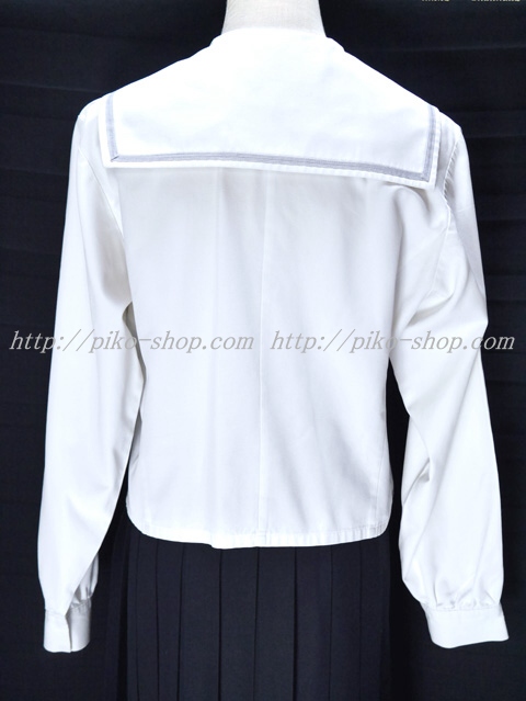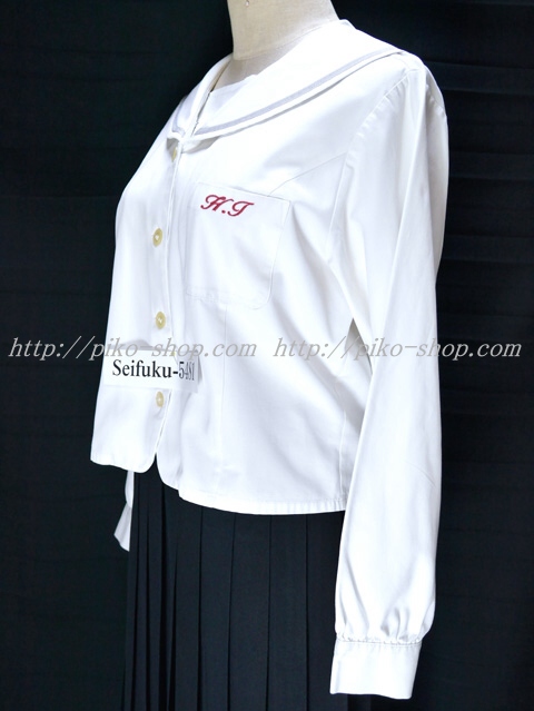 | 詳細/特徴 冬服2点セット (長袖ブラウス・スカート) ☆セーラー襟☆ ブラウスはセーラー襟付きでシルバーのセーラーラインが特徴☆ 胸ポケットの校章刺繍が可愛いです♪ スカートは濃紺で24本車ヒダプリーツスカート♪ 左ポケット&ファスナー☆ ウエスト調整はアジャスタータイプ♪ |