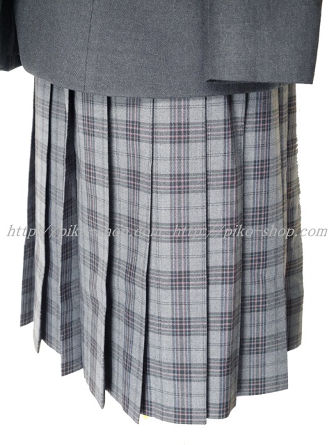 | 詳細/特徴 冬服2点セット (上着・スカート) ☆現行制服☆ ブレザーはチャコルグレー色のシングルボタンタイプ☆ 胸ポケットの校章エンブレムが特徴的☆ スカートはグレー系のチェック柄で16本の車ヒダプリーツ♪ ウエスト調整はアジャスタータイプ☆ 左ファスナー&ポケット☆ |