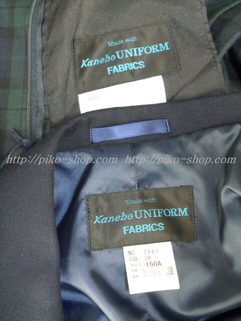 | 詳細/特徴 冬服2点セット (上着・スカート) ☆上質品☆ 濃紺タイプのブレザーセット♪ 上着は濃紺でシングルボタン・ボタンに校章入り☆ 胸ポケットに校章エンブレム付き☆ スカートはグリーン系のチェック柄で24本車ヒダプリーツ☆ 左ファスナー・左ポケット☆ ウエスト調整はアジャスター調整タイプ☆ |