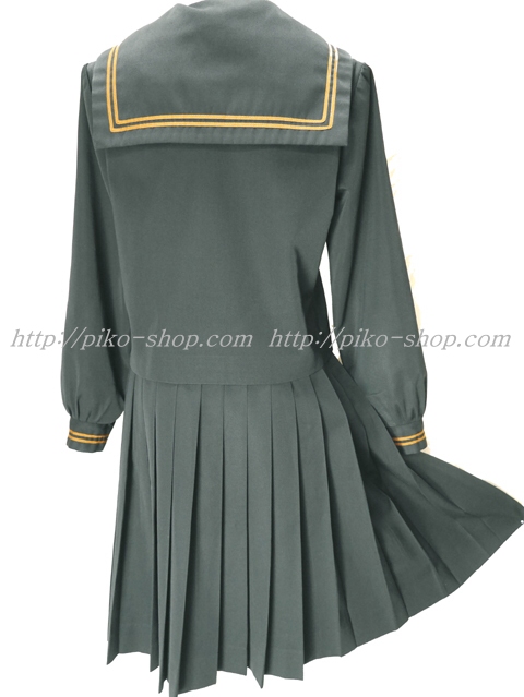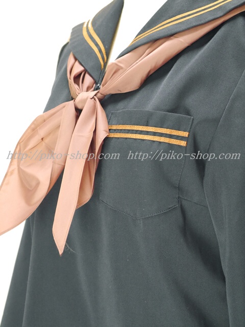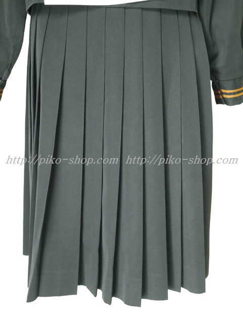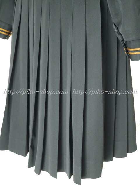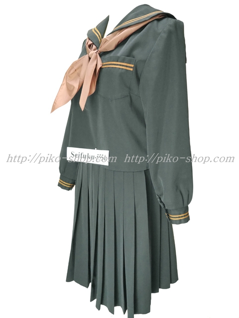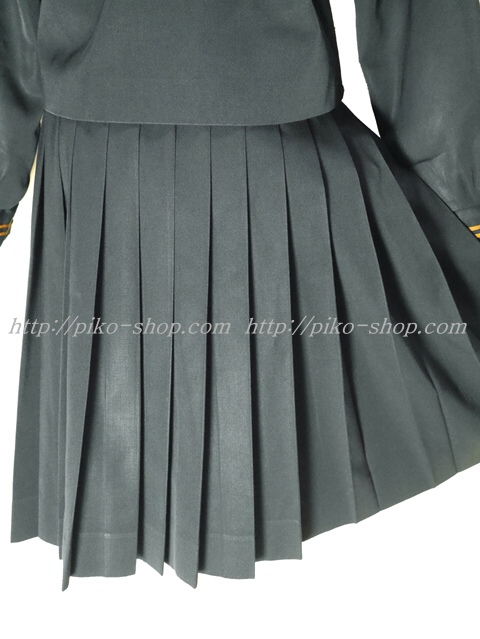 | 詳細/特徴 冬服3点セット (上着・スカート・指定スカート) ☆黒系セーラー☆ 【スカーフは新品で茶色の三角タイプで素材はナイロンのハネクトーンです】 珍しい黒色の少し光沢感のあるセーラー服♪ 上着はセーラー襟と胸ポケット両袖口に茶色の2本ライン☆ 左脇下ファスナー☆ スカートは28本車ヒダプリーツスカート♪ 左ファスナー&ポケット☆ ウエスト調整はアジャスタータイプ♪ |