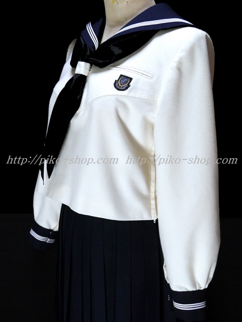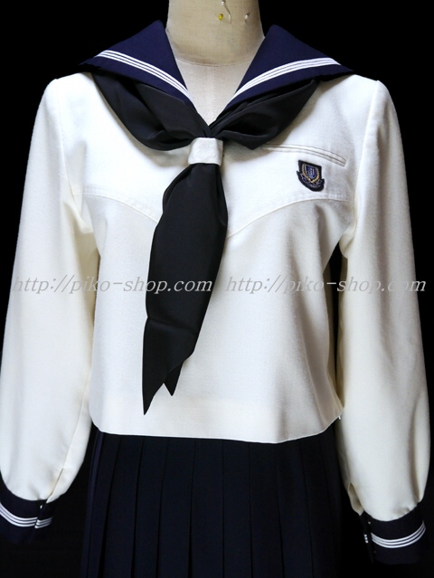 | 詳細/特徴 冬服3点セット 上着・スカート・指定スカーフ ☆新タイプの現行制服☆ 【スカーフは新品で黒色の三角タイプで素材はポリエステル100%のデシンです】 上着はクリーム色のセーラー服で濃紺のセーラー襟に白線3本入り☆ スカーフ留めに校章刺繍入り・左脇下ファスナー☆ 胸ポケット部分に校章エンブレム付き♪ (セーラー襟はボタン留めでお洗濯時に取り外しができます) スカートは濃紺で28本車ヒダプリーツスカート☆ ウエストベルト前左部分と裾に校章刺繍入り・左ファスナー&ポケット☆ ウエスト調整はアジャスタータイプ☆ |