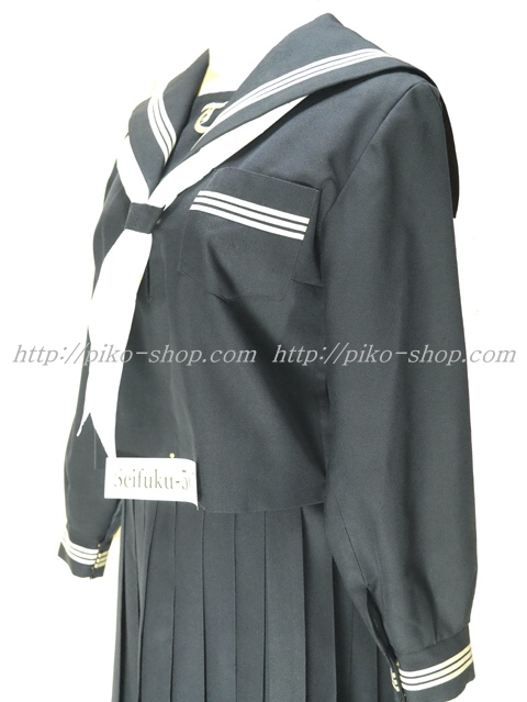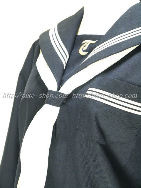| 詳細/特徴 冬服3点セット (上着・スカート・指定スカーフ) ☆人気の胸当て付き☆ 【スカーフは新品の三角スカーフで素材はナイロン100%のハネクトーンです】 人気の濃紺セーラー服セット♪ 上着はセーラー襟・胸ポケット・両袖口に白線3本入り☆ 胸当てに大きく校章刺繍・スカーフ留め付き☆ 左脇下ファスナータイプ・内側にネーム刺繍入り♪ スカートは濃紺で28本車ヒダ仕様のプリーツスカート♪ 左ファスナー&ポケット☆ ウエスト調整はアジャスタータイプ☆ ☆人気の胸当て付きセーラー服☆ |