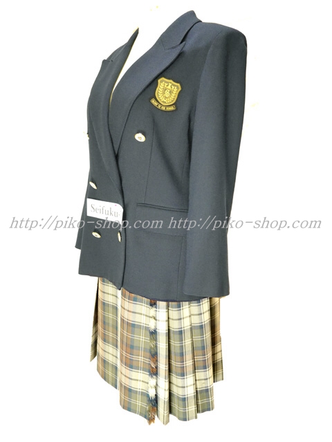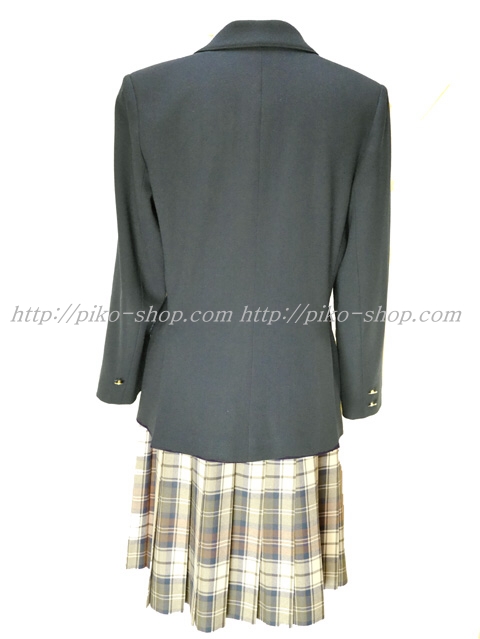 | 詳細/特徴 冬服3点セット (ブレザー・冬スカート・夏スカート) ☆可愛い人気制服☆ ブレザーは濃紺で白×ゴールドボタンがポイントのダブルタイプ☆ 左胸に校章エンブレム付き・内側にネーム刺繍入り☆ 冬スカートは前幅広タイプの19本箱ヒダプリーツで巻きスカート風に フリンジとベルトが付いてます♪ グリーン×ブラウン×ホワイトのチェック系のタータンチェック柄♪ 左ファスナー&ポケット・ウエスト調整はアジャスタータイプ☆ 夏スカートは18本車ヒダプリーツスカート・左ポケット&ファスナー☆ グリーン×ブラウン×ホワイトのチェック系タイプ♪ ウエスト調整はアジャスタータイプ☆ とても可愛い制服です(^^♪ |