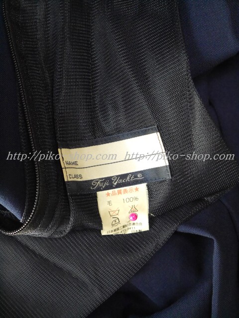 | 品質と状態 3年間の使用済み制服なので自然な使用感の傷みは若干あります。特に目立った傷みもシミ汚れも無く品質も状態も良くて綺麗な制服ですが厳しく言っちゃうと夏服のウエスト裾に1箇所薄い感じの墨汁のシミ汚れを染み抜きした形跡がある状態です。 |