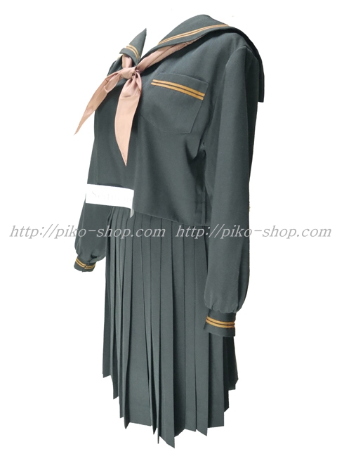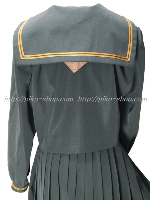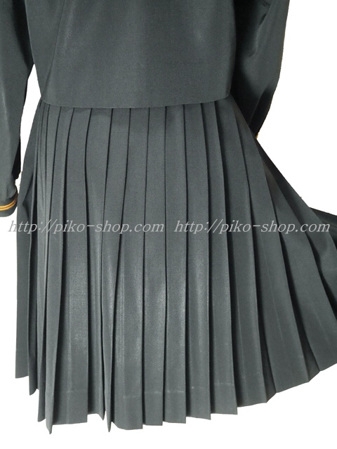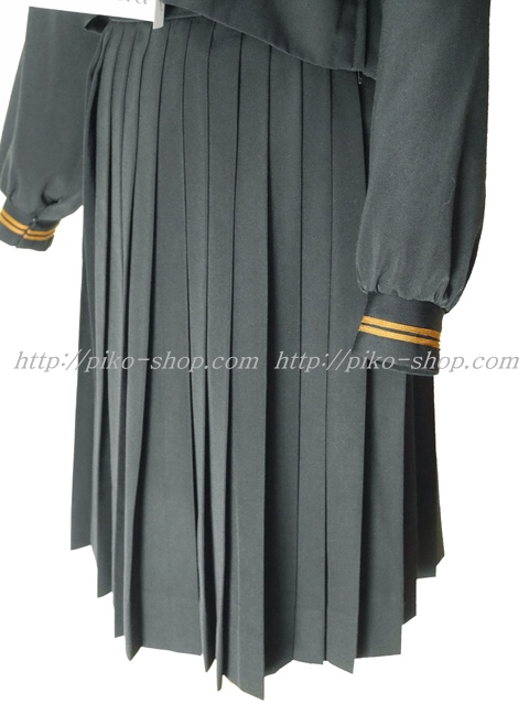 | 詳細/特徴 冬服3点セット (上着・スカート・指定スカート) ☆34本車ヒダ仕様☆ 【スカーフは新品で茶色の三角タイプで素材はナイロンのハネクトーンです】 珍しい黒色の少し光沢感のあるセーラー服♪ 上着はセーラー襟と胸ポケット両袖口に茶色の2本ライン☆ 左脇下ファスナー☆ スカートは34本車ヒダ仕様のプリーツスカート♪ 左ファスナー&ポケット・ネーム刺繍入り☆ ウエスト調整は3段ホックタイプ♪ |