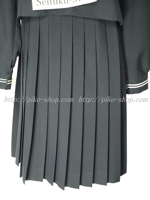 | 詳細/特徴 冬服3点セット (上着・スカート・指定スカーフ) ☆大きめサイズ☆ 【スカーフは新品の帯タイタイプで素材はポリエステル100%のデシンです】 人気の濃紺タイプのセーラー服セット♪ 上着は濃紺でセーラー襟と両袖口に白線2本♪ 左脇下ファスナー・胸当て付き☆ セーラー襟に白で校章刺繍がポイント♪ スカートも濃紺で28本車ヒダ仕様のプリーツスカート♪ 左ファスナー&ポケット☆ ウエスト調整はアジャスタータイプ☆ |