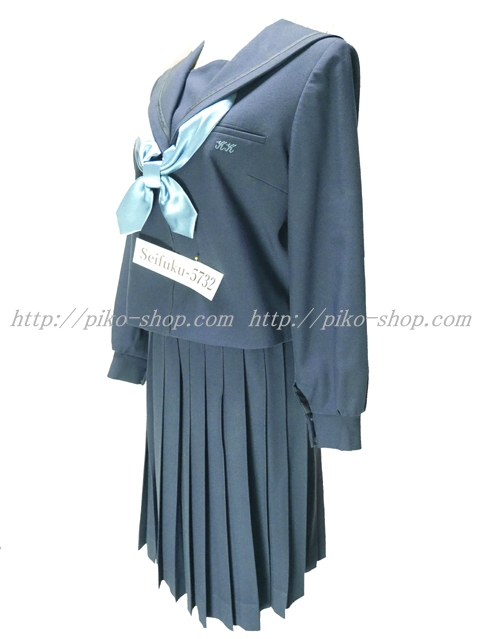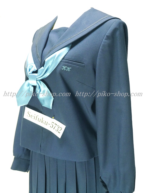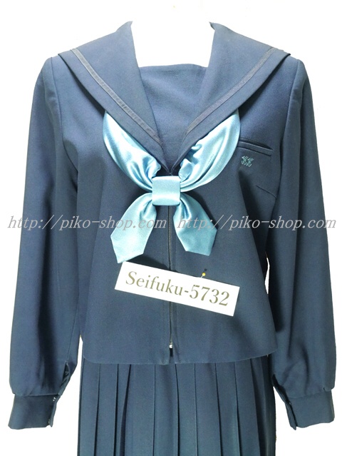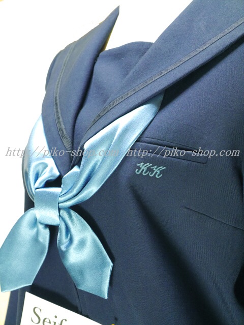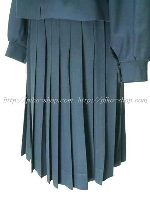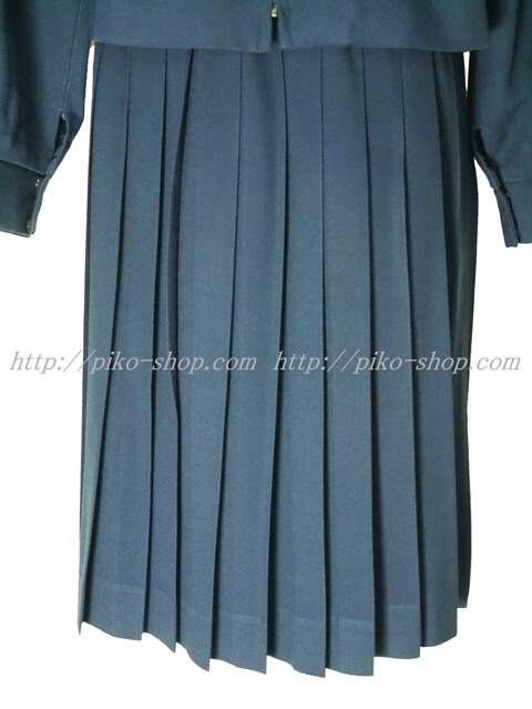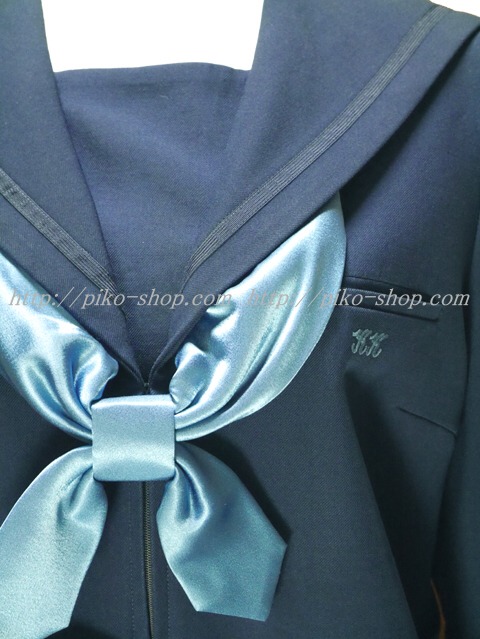 | 詳細/特徴 冬服3点セット (上着・スカート・専用シルク風リボン) ☆現行制服☆ 生地の色は青紺って感じの色です♪ 胸ポケットに校章の刺繍入り・セーラー襟のラインは紺色の1本ラインです。 28本車ヒダプリーツ・左ファスナー・左ポケット☆ ウエスト調整はアジャスタータイプです♪ |